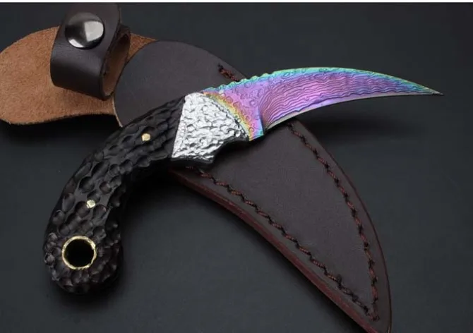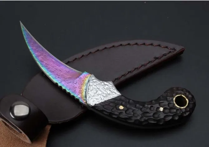 . Купить Керамбитовый нож дамасская сталь голова плюс ebony Тактический AUS8 лезвие EDC инструмент Открытый Отдых выживания разведка карманный нож Продажа Дешево.