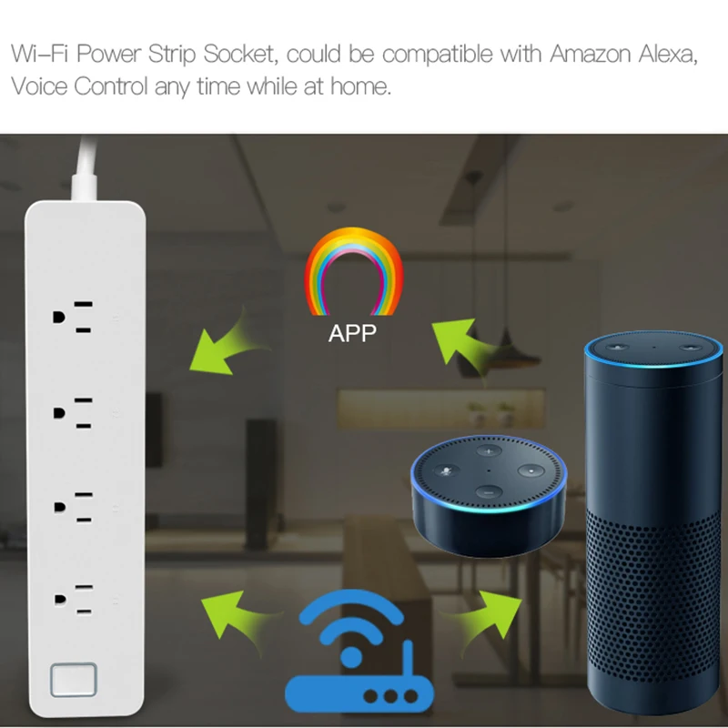 Купить 4 розетки Smart WiFi мощность полосы стабилизатор напряжения беспроводной мощность расширители работает для Amazon Alexa эхо высокое качество Цена Дешево