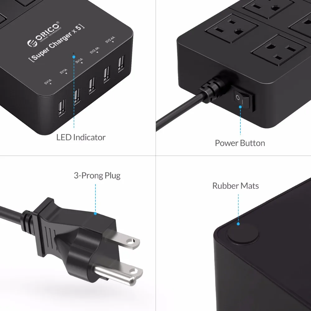 Купить ORICO HPC 4A5U US BK 4 США семья Защита от перенапряжения мощность полосы с 5 В 8A порты и разъёмы USB зарядное устройство для почти Смартфон черный Цена Дешево.