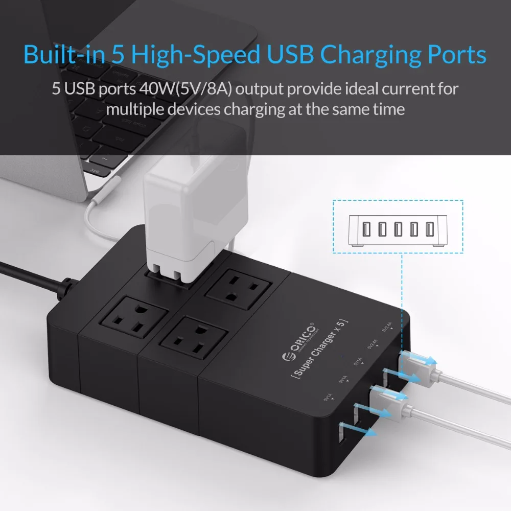 Купить ORICO HPC 4A5U US BK 4 США семья Защита от перенапряжения мощность полосы с 5 В 8A порты и разъёмы USB зарядное устройство для почти Смартфон черный Цена Дешево