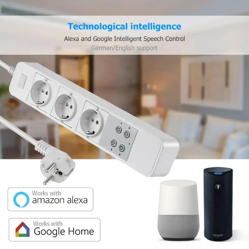 Купить Портативный Wi Fi Smart power Strip Socket Голосовое управление таймер переключатель мощность полосы выход ЕС Разъем для Alexa Google Home новое поступление Цена Дешево.